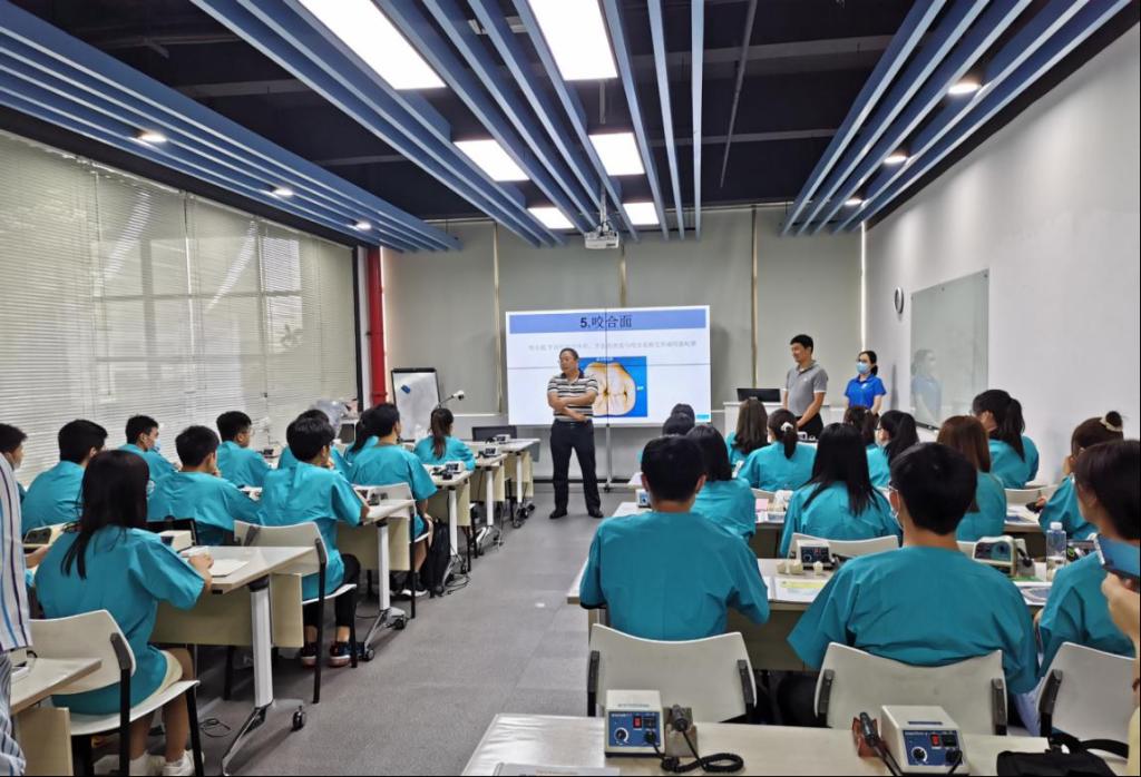实训条件一流:2017年校企共建校内生产实训基地---“鲲鹏口腔产学研中心”。该中心以行业最前沿的数字化口腔为建设重点,集教学、生产、科研为一体,拥有口腔CAD/CAM系统、3shape口内扫描仪、陶瓷修复体制作系统等先进实训设备,设备总资产近400万元,企业数字化教学专家入校为学生的专业学习提供与行业企业零距离接触的服务。