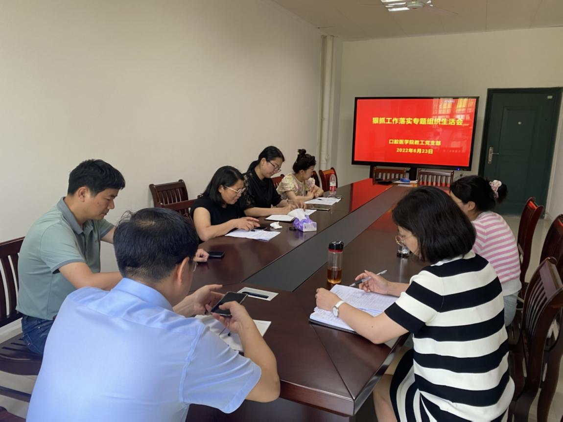 6月23日下午,伟德bv1946官网教工党支部在1号实训楼111会议室召开“2022年上半年狠抓工作落实专题组织生活会”。副校长胡振宇出席并指导会议,会议由党支部书记罗志红主持,支部全体党员参加。