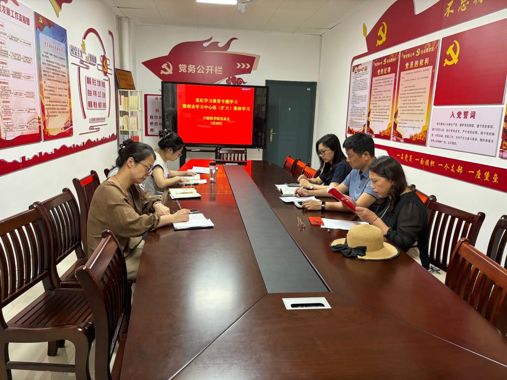 为推动党纪学习教育走深走实,5月29日,伟德bv1946官网党总支理论学习中心组(扩大)专题学习新修订的《中国共产党纪律处分条例》(以下简称《条例》),学院党总支副书记罗志红主持会议并总结讲话,学院党总支委员、各教研室主任参加会议。