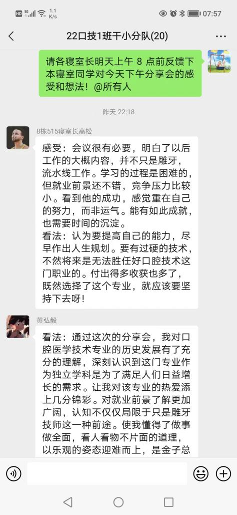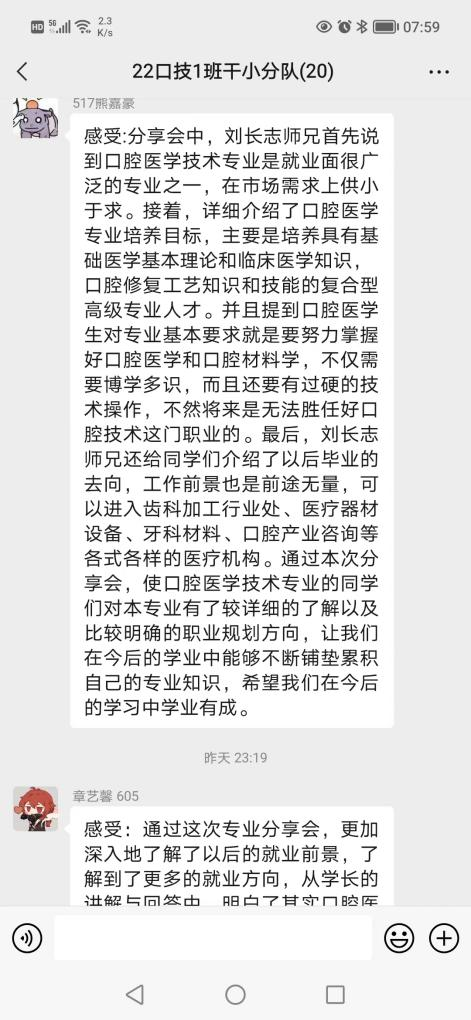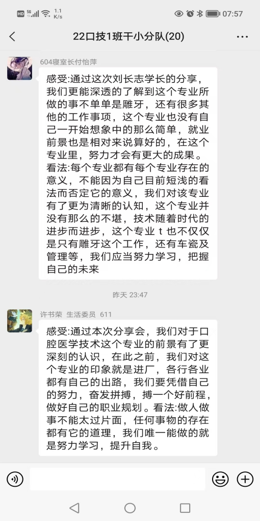 刘长志同学作为伟德官网优秀毕业生代表,在学生时期就先后荣获全国卫生职业院校口腔技能大赛雕牙排牙三等奖,深圳市口腔修复工职业技能大赛三等奖的荣誉。毕业后短短四年时间,已成长为浦江口腔医院技工室主管。宣讲中,刘长志结合自身奋斗的历程和从事行业,从专业发展历史及现状、固定修复义齿制作流程、数字化在口腔行业中的发展与应用及专业发展方向等方面做了介绍,同时用朴实的语言为学弟学妹分享了自己学习和工作中的亲身经历和感受。现场气氛活跃,同学们积极互动。