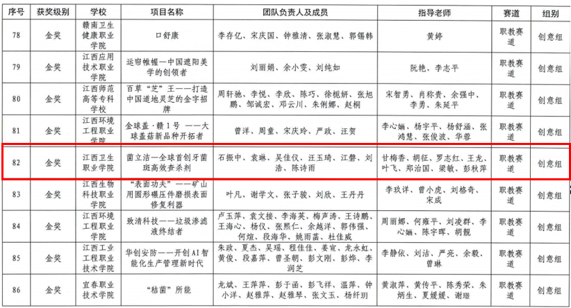 近日,由省教育厅、省发展和改革委员会、省工业和信息化厅、省人力资源和社会保障厅、省农业农村厅、省市场监督管理局、省乡村振兴局、共青团江西省委、省科学技术协会、省中华职业教育社主办的第九届江西省“互联网+”大学生创新创业大赛落下帷幕。伟德bv1946官网“菌立洁——全球首创牙菌斑高效查杀剂”项目荣获大赛金奖。