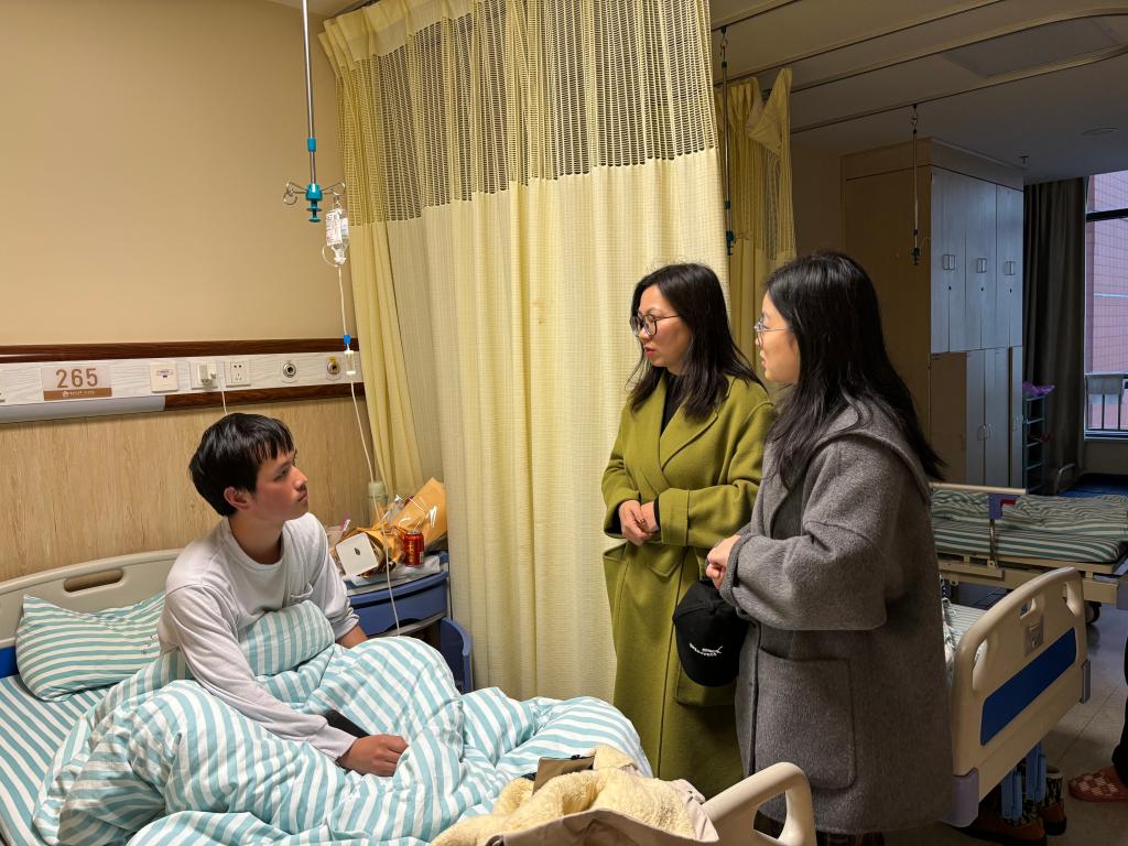 3月5日,伟德bv1946官网党总支副书记罗志红来到南昌大学第一附属医院象湖分院,看望慰问生病住院的同学。学院团学办辅导员叶燕平陪同慰问。