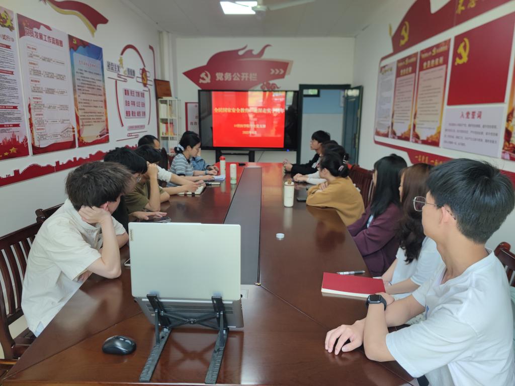 学生党支部书记叶燕平为大家详细介绍了全民国家安全教育日设立十年来的发展历程和重要作用,列举近年来我国在维护国家安全方面取得的成就和面临的挑战,强调了国家安全与每个人息息相关,鼓励学生党员、入党积极分子参与到维护国家安全的行动中来。