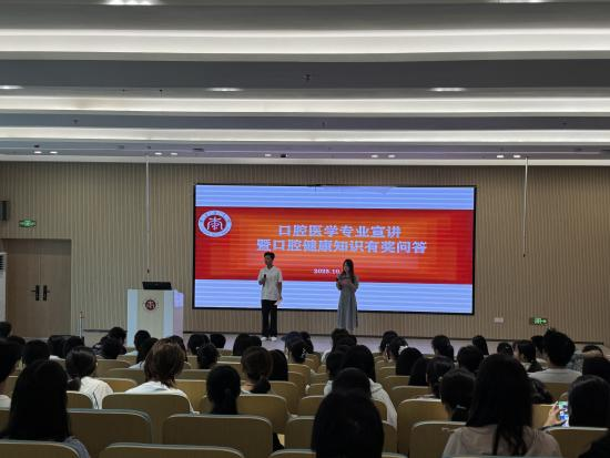 为帮助2025级口腔医学专业新生深入了解口腔医学专业前景,进一步普及科学口腔健康知识,2025年10月17日,伟德bv1946官网举办“口腔医学专业宣讲暨口腔健康知识有奖问答”主题活动,2025级口腔医学182名新生、部分优秀学长以及伟德bv1946官网部分教师到场参与。