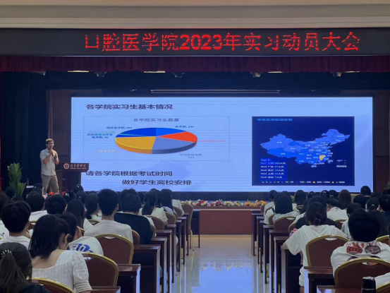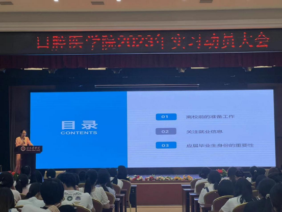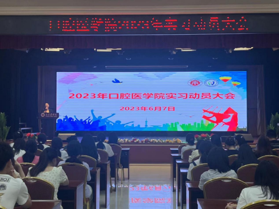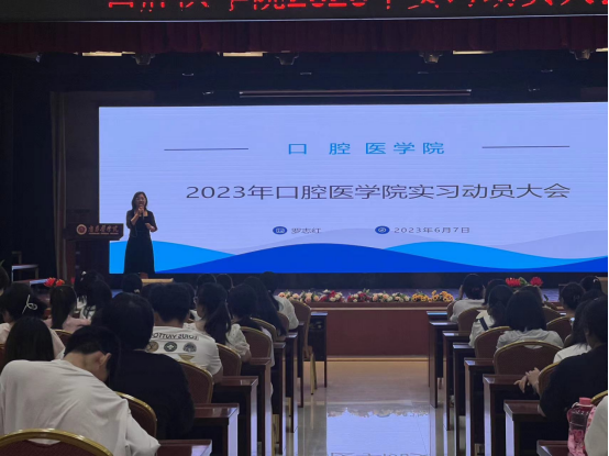 教务处张卫玮老师首先向毕业生介绍了岗位实习的工作要求,主要包括了实习单位的安排、实习期间学生管理及实习相关事宜做了详细介绍。招生就业处陈洁老师为同学们分析了就业形势,详细介绍了三方协议的签订、实习和就业的关系,利用好应届生身份,关注就业信息,及早就业。学院综合办主任甘梅香老师从专业视角强调了大家在口腔临床实习中的常见问题,希望大家用规范的操作展现我们江卫学子的医学素养和专业技能。