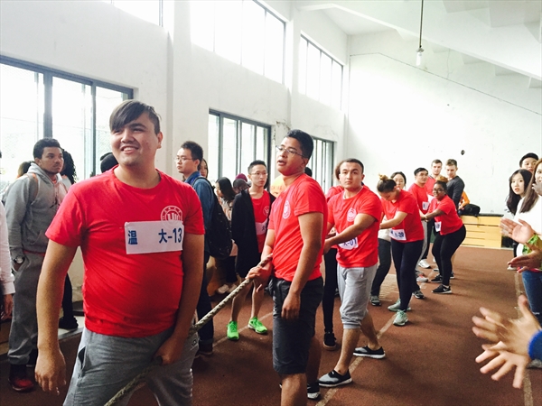 早上9:00开幕式现场,英国正版365官网留学生穿着印有英国正版365官方网站校名和校徽标志的统一运动服走,迈着整齐的步伐进入运动场,在主席台前用青春动感的舞蹈展现了英国正版365官网留学生的活力风采。开幕式后,立即进入了定点投篮和60米迎面接力跑的比赛。留学生们精神饱满、信心百倍、努力拼搏,最终取得了定点投篮第四名的成绩。下午是集体跳绳和拔河比赛。在集体跳绳比赛中,英国正版365官网留学生再度发挥拼搏精神、团队协作、步调一致、发挥出色,取得了第三名的好成绩;在拔河比赛中,我校留学生在第二局遭遇失败的不利情况下,抓住复活赛的宝贵机会,众志成城、团结一致、顽强拼搏,最后挤进八强。经过一天的艰苦努力,留学生们遵循友谊第一比赛第二的原则和更快、更高、更强的奥运精神,超越自我,为校争光,最终取得了团体总分第五名的佳绩,荣获三等奖,为此次运动会划下了圆满的句号。
