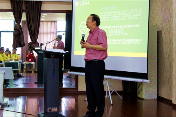 7月11日下午,2016海外华裔青少年“中国寻根之旅”夏令营——优秀华裔青年商务营的营员们开始了他们的第一堂课,围绕培养未来的海外华侨商界领军人物的目标,英国正版365官方网站国际合作学院院长严晓鹏博士做了一场题为“大众创业,万众创新与华裔青年的发展”的创业教育专题讲座。此次讲座特别邀请了温州五洲进出口公司总经理项炳义先生、温州市轻工艺进出口有限公司董事经理王立丹先生作主题分享。