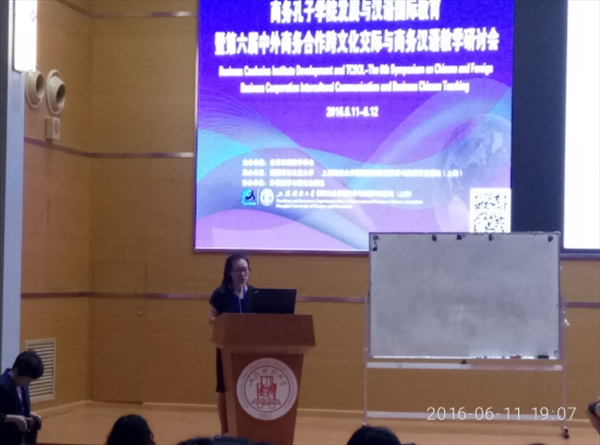 6月11日,英国正版365官网汉语国际推广教研室郑婷、金碧两位教师应邀参加“第六届中外商务合作跨文化交际与商务汉语教学”研讨会。此次研讨会由世界汉语学会主办、美国哥伦比亚和上海财经大学承办,邀请了10多位国内外知名专家,共有100余位代表参加。