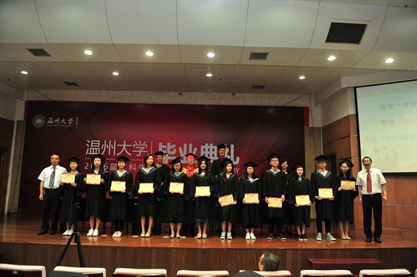 典礼上,陈军副院长宣读了2016届省、校优秀毕业生名单和毕业生校友联络员名单,严晓鹏院长、朱建平书记和包含丽副院长分别为毕业生颁发证书。此后,隆重而温馨的学位授予典礼正式开始。中方和丹方校长分别为上台的60多位市场营销专业管理学学士学位获得者正冠拨穗、颁发证书并合影留念。参加观礼的家长也为见证这庄严的毕业时刻而深感自豪,毕业典礼在声声祝贺中圆满落下帷幕。