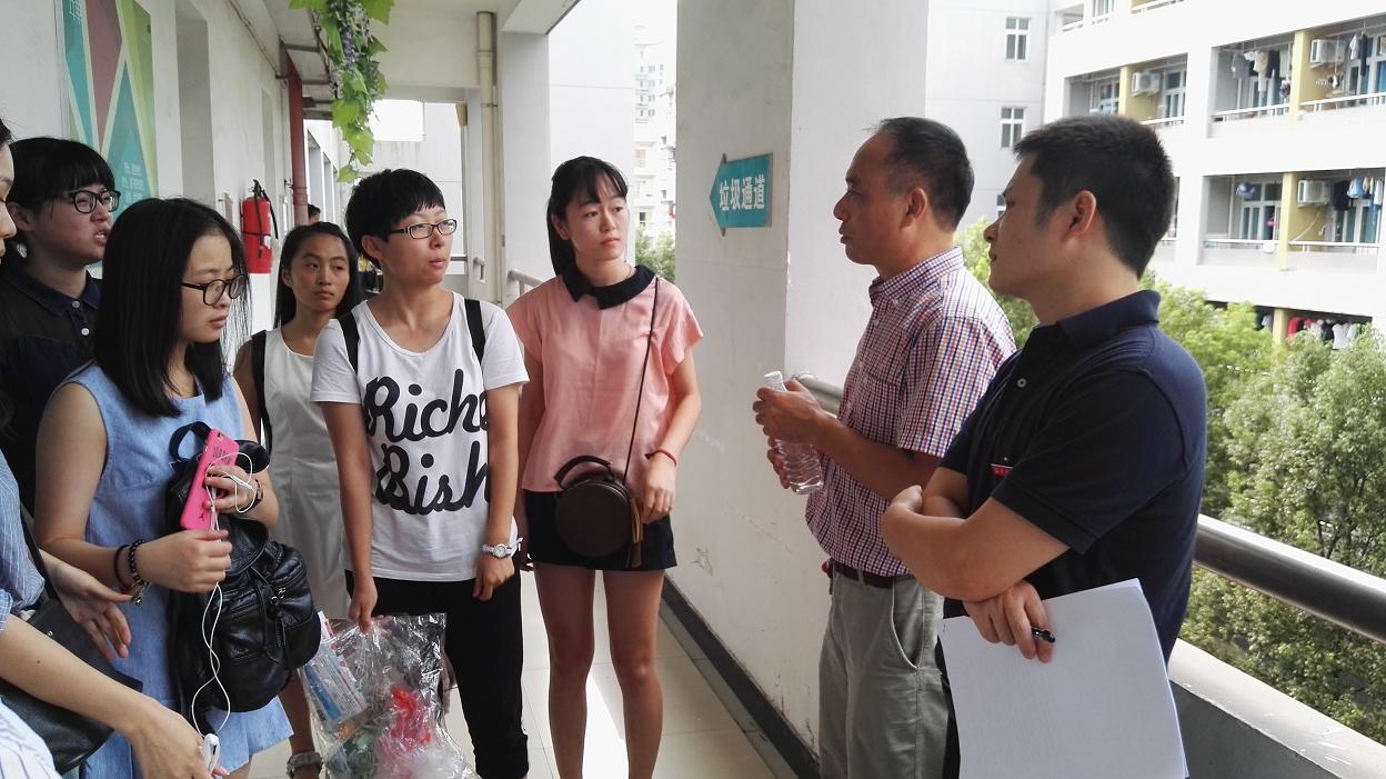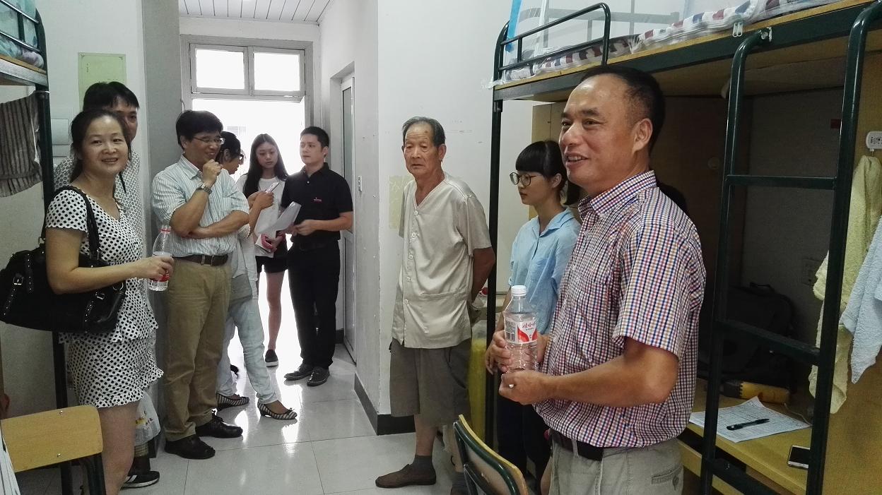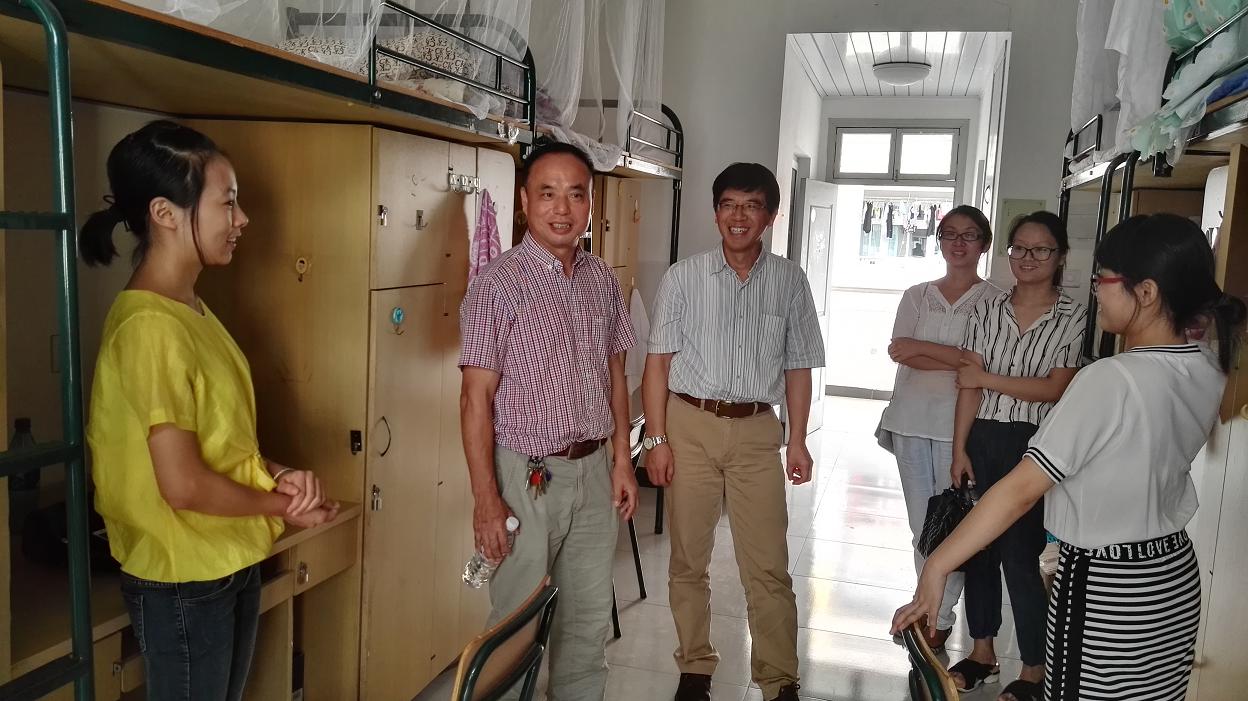9月8日下午两点,英国正版365官方网站国际合作学院党总支书记朱建平、副院长陈军带领新生班主任和辅导员一起走访英国正版365官网2015级23个新生寝室,看望慰问新生及家长。