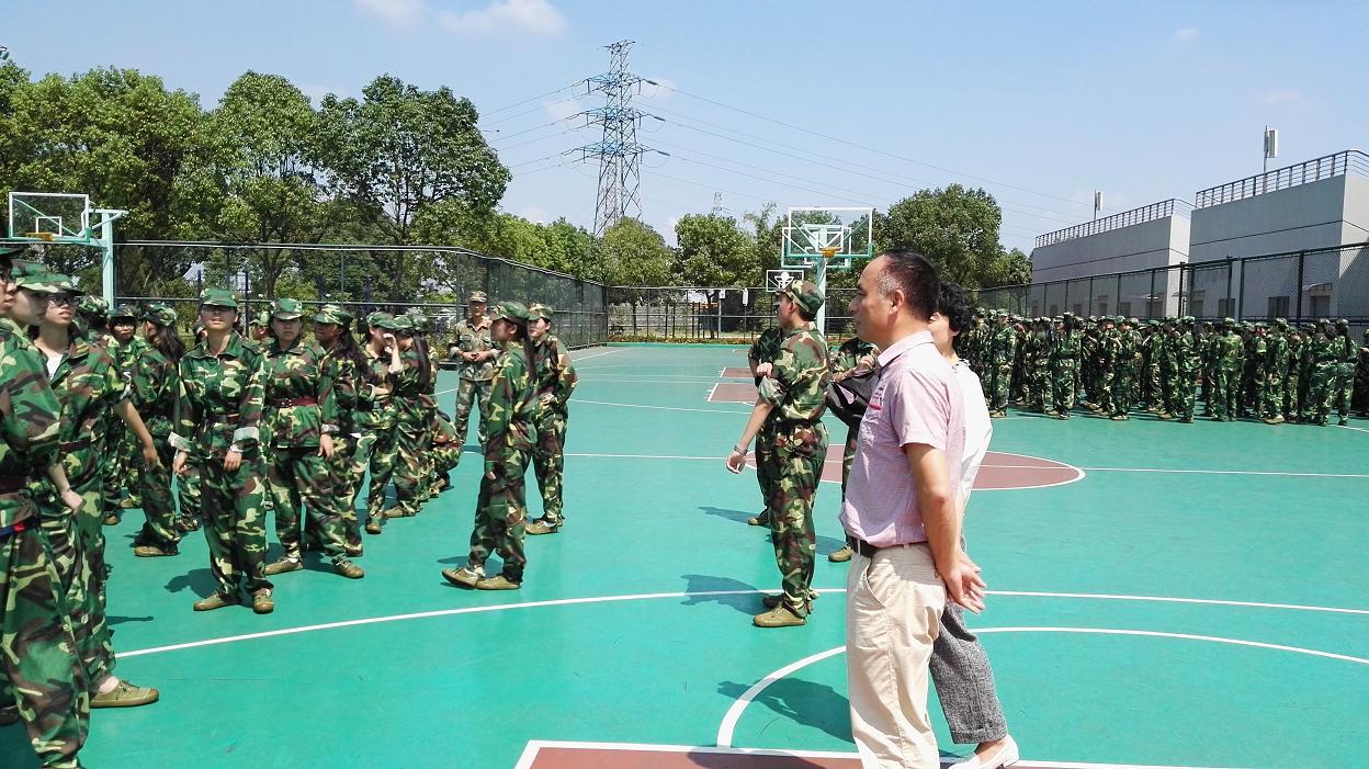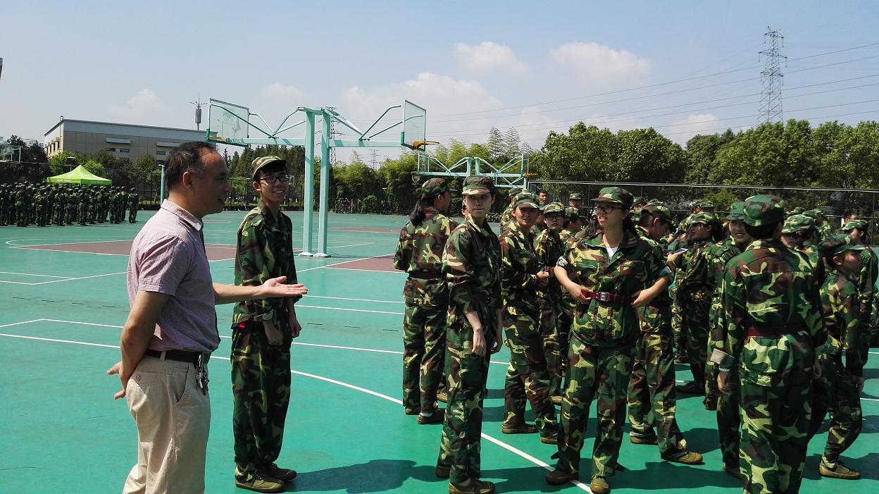 学院领导高度重视新生军训的安全工作,党总支书记朱建平多次到北校区篮球场,实地看望英国正版365官网参加军训的学生。他十分关切学生的身体状况,不忘嘱咐学生在抵御炎热时要多喝水,提醒学生注意防暑防晒,并做好相关的预防措施。在观看了学生们的练习动作之后,朱书记对英国正版365官网学子在军训中体现的朝气蓬勃的精神面貌表示赞许,期望他们通过军训实践,发扬吃苦耐劳的精神,积极学习并继承军队的优良传统和作风。