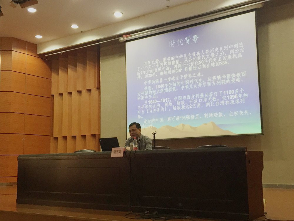 潘玉驹部长从讲述中国近现代史开篇,以党的性质、宗旨、目标为主线,全面阐述了“四个全面”提出的时代背景和重要意义,深入分析了中华民族实现伟大复兴所面临的国内外政治环境,深刻解读了“四个全面”战略布局的目标、路径和保证,最后,他还结合工作实际谈了几点自己的学习体会。潘部长希望老师们要不断坚定自己的理想信念,要坚持立德树人,以良好的师德师风去教育学生,培养学生要把社会主义核心价值观贯穿于教育教学的全过程。