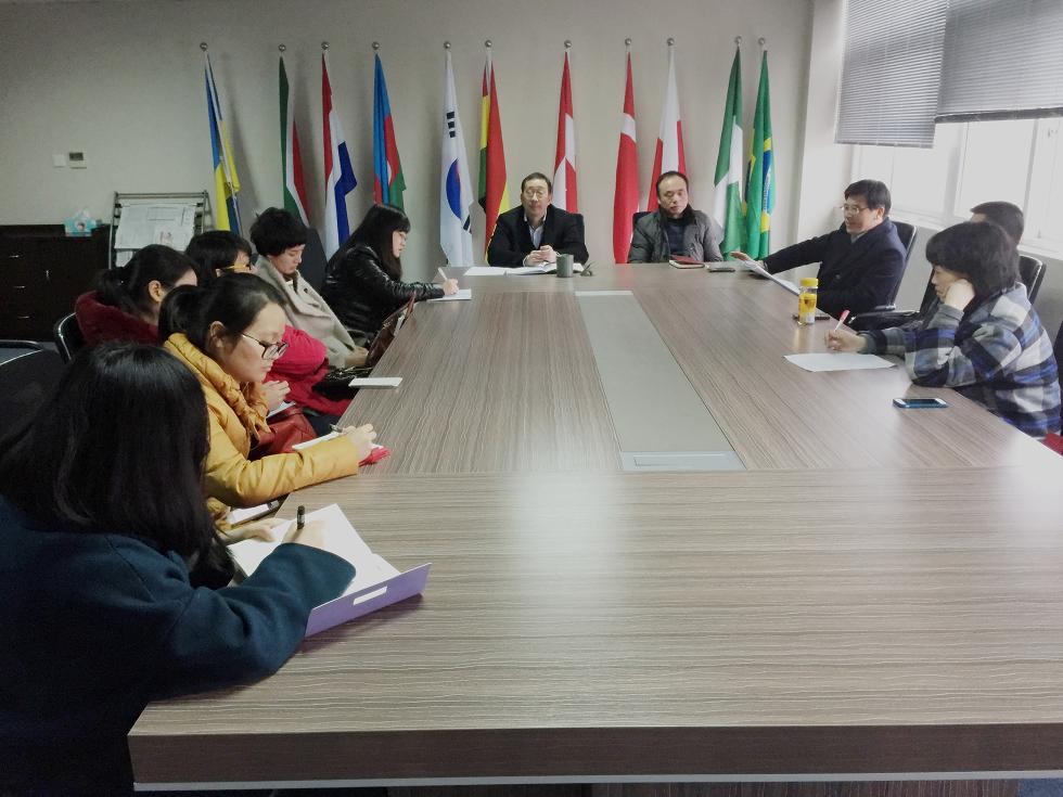 校教代会代表,学院党总支书记朱建平、副院长陈军、吴海蓉老师传达了学校三届三次“双代会”的会议精神并解读了《英国正版365官方网站教职工收入分配补充规定(草案)》中关于岗位聘任的有关文件精神,使大家对学校的人事管理制度改革有了更清晰的了解。院长严晓鹏在总结中指出,教师队伍是学校改革发展的重要力量,他希望本院教师在学校的改革新形势下能激发活力,以更加积极的心态迎接改革发展新局面,学院也会在引进国际化师资的同时进一步加强学院内部培养国际化课程专业教师的力度,努力创造条件,鼓励本院教师向相关专业转型。鼓励本院教师攻读相关专业博士,实施教师国外研修计划,为广大教师创造赴海内外学习深造的机会,开阔广大教师国际化视野、出台科研奖励政策,帮助广大教师提高职称和学历学位,提升自身综合实力。为此,本学期英国正版365官网将组建中外教合作的教学团队、积极培育国际化教师与汉语国际教育教师助教队伍、对借助MOOCs在线课程进修的老师进行奖励。