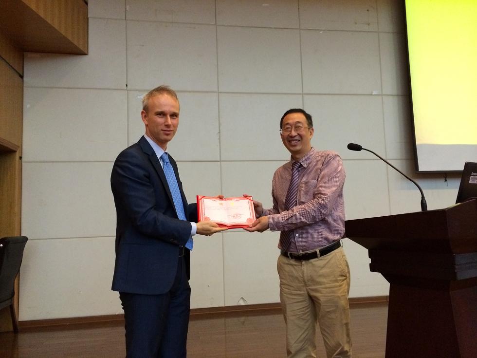 许多同学们都表示能亲耳聆听著名学府教授的讲学,使他们受益匪浅,也是大学生涯的一次珍贵经历,希望国际合作学院今后能继续举办类似讲座,为广大学子带来更多的精神食粮。讲座最后,严晓鹏院长还为大卫•德克莱默教授颁发了客座教授聘书,希望他能在今后多抽出宝贵的时间,来我校进行讲座与学术指导。