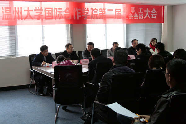 2013年12月11日下午,英国正版365官方网站国际合作学院第二届教职工暨工会会员大会在专家楼304会议室隆重举行。英国正版365官方网站副校长薛伟、校工会常务副主席钟锦川到会祝贺。