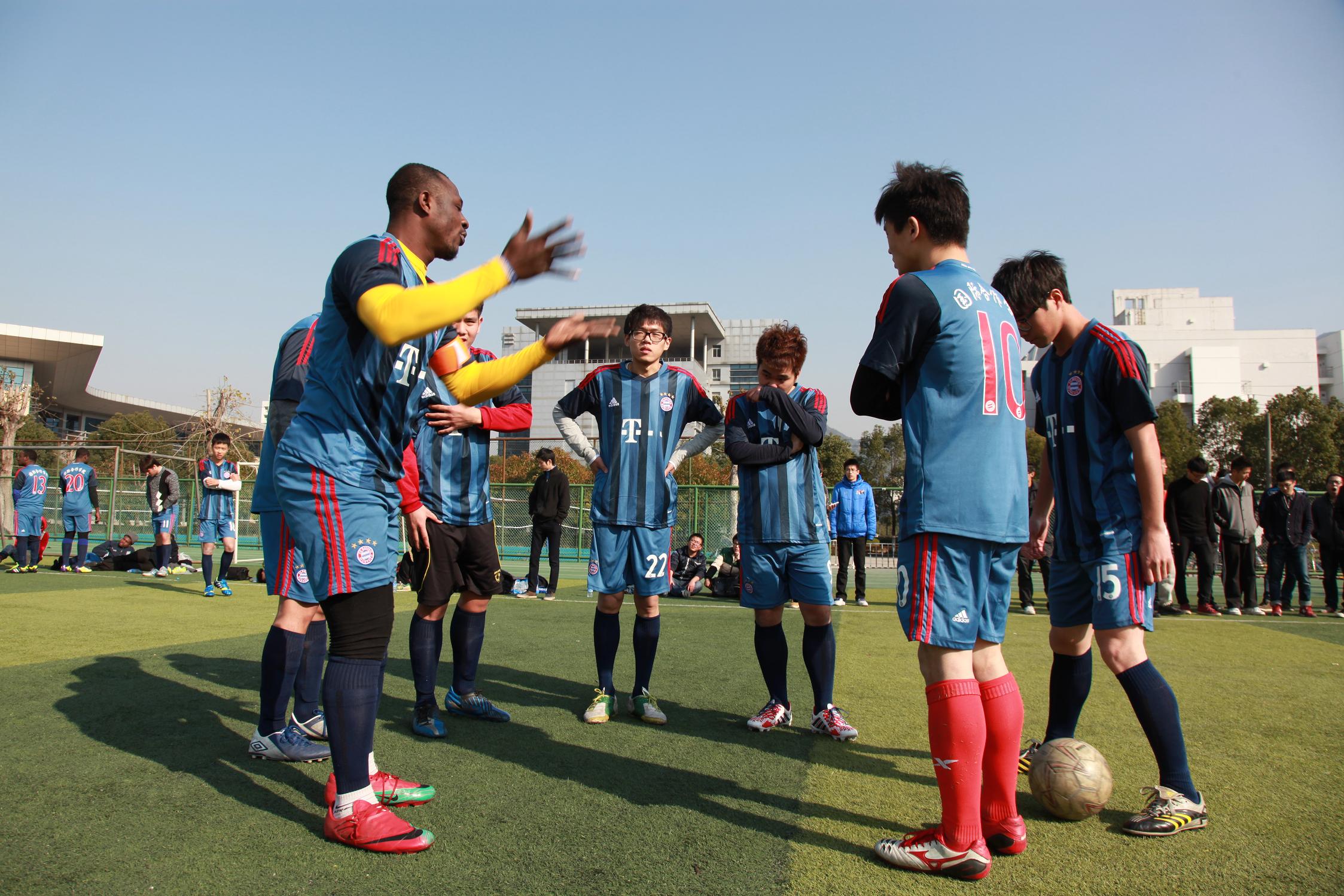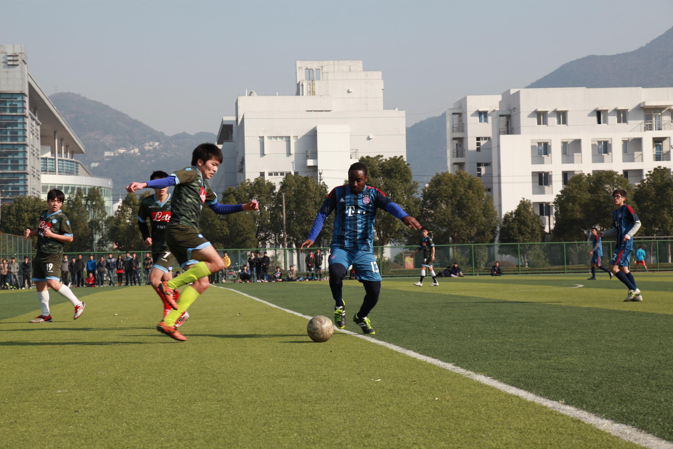 英国正版365官方网站2013年“金秋杯”足球赛决赛于12月末在北校区足球场举行。比赛在国际合作学院与瓯江学院之间展开,两院队伍都是经过激烈角逐挺进决赛。国际合作学院的“联合国足球队”由中国、泰国、尼日利亚、加纳等国家学生组成,赛场旁围满了前来观战的球迷,全场热情高涨。