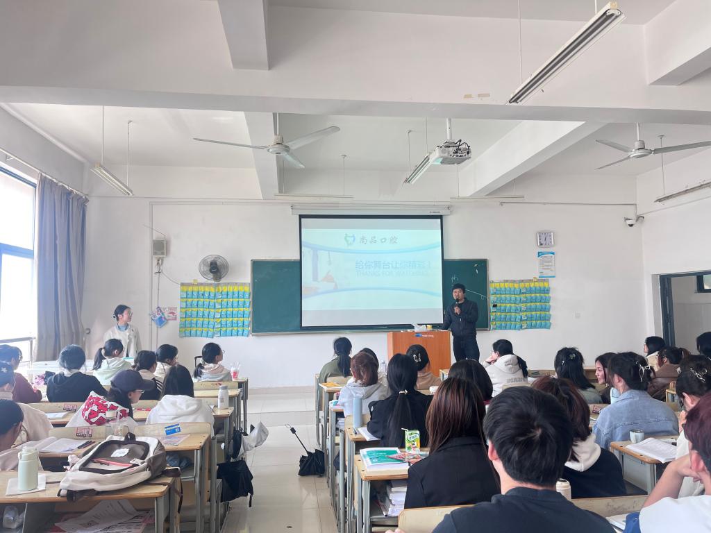 为进一步搭建校企人才沟通合作平台,拓宽学生就业渠道,鹰潭月湖区尚品口腔门诊部于3月28日中午在3号教学楼507召开专场招聘宣讲活动,门诊代表吴医生、学院就业干事朱玲老师及伟德bv1946官网部分学生参加。